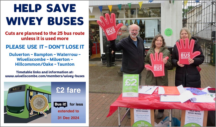 Somerset Council is working with community groups, including the Wivey Bus Group, to promote greater use of threatened services. The aim is to highlight that a bus journey allows you to relax on the way and the cost is lower than some other expenses.